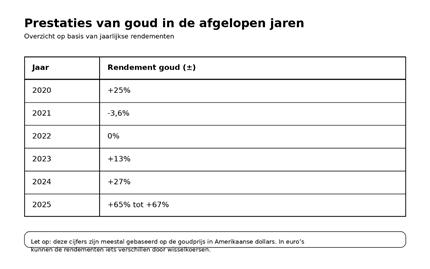 Al sinds jaar en dag geldt goud als het toevluchtsoord van beleggers in onzekere tijden. Bij Vermogensbeheer Friesland is goud echter geen reflex, maar een strategische keuze. Onze portefeuilles zijn al sinds 1 februari 2023 overwogen in goud, en dat heeft aantoonbaar bijgedragen aan het resultaat. Het bevestigt wat wij al langer geloven: een doordachte strategie, gebaseerd op spreiding en vooruitkijken, werkt.